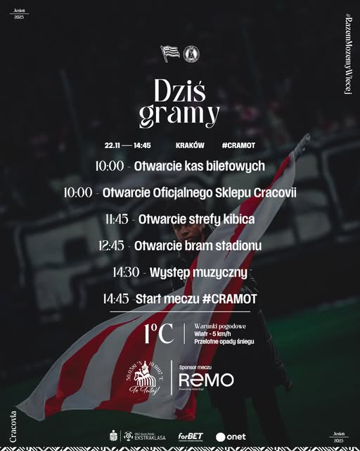Trzecie spotkanie w ramach 16 kolejki polskiej PKO BP Ekstraklasy sezonu 2025/2026. Na Stadionie Miejskim KS Cracovii im. Józefa Piłsudskiego przy ulicy Kałuży 1 w Krakowie KS Cracovia podejmowała Motor Lublin. Gospodarze bili się o strefę eliminacji do fazy ligowej Ligi Konferencji Europy na sezon 2026/2027. Przed tą kolejką zajmowali szóste miejsce w ligowej tabeli ze stratą siedmiu punktów do liderującego Górnika Zabrze. W pięciu ostatnich meczach ligowych Pasy ODNIOSŁY TYLKO JEDNO ZWYCIĘSTWO (u siebie z RKS Rakowem Częstochowa 2:0), raz zremisowały (u siebie z KGHM Zagłębiem Lubin 0:0) i poniosły trzy porażki (na wyjeździe z MZKS Arką Gdynia 2:1, MKS Pogonią Szczecin 2:1 i RKS Radomiakiem Radom 3:0). W kadrze meczowej ekipy Luki Elsnera, na starcie z Koziołkami, zabrakło Kamila Glika (kontuzja kolana), Otara Kakabadze (uraz ścięgna Achillesa), Dijona Kameriego (kontuzja mięśniowa) i Gabriela André Josepha Charpentiera (Gabriela Charpentiera – uraz mięśniowy). Pod znakiem zapytania stał występ Kahveha Zahiroleslama (choroba). Goście walczyli o utrzymanie. Przed tą serią gier byli na piętnastej pozycji ze stratą TRZYNASTU OCZEK do liderującego Górnika Zabrze. W pięciu ostatnich pojedynkach ligowych Motorowcy ODNIEŚLI TYLKO JEDNO ZWYCIĘSTWO (u siebie z RTS Widzewem Łódź 3:0), dwa razy zremisowali (na wyjeździe z KKS Lechem Poznań 2:2 i u siebie z Wisłą Płock 1:1) i ponieśli dwie porażki (na wyjeździe z RKS Rakowem Częstochowa 2:0 i u siebie z GKS-em Katowice 2:5). W kadrze meczowej zespołu Mateusza Stolarskiego, na spotkanie z Biało-Czerwonymi, zabrakło Mbaye Jacquesa Ndiaye (Jacquesa Ndiaye – kontuzja kostki). Pod znakiem zapytania stał występ Filipa Wójcika (problemy pozaboiskowe). Która z drużyn zbliżyła się do swojego celu? Czy KS Cracovia doskoczyła do strefy eliminacji do rundy ligowej UEFA Conference League na sezon 2026/2027? Czy Motor Lublin odskoczył od strefy spadkowej? Przekonajmy się.