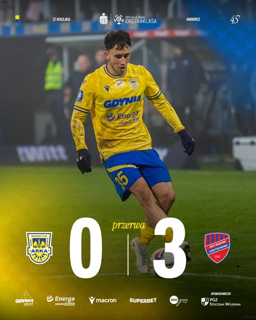 Szóste spotkanie w ramach 17 kolejki polskiej PKO BP Ekstraklasy sezonu 2025/2026. Na Stadionie Miejskim w Gdyni MZKS Arka Gdynia podejmowała RKS Raków Częstochowa. Gospodarze bili się o utrzymanie. Przed tą kolejką zajmowali trzynaste miejsce w ligowej tabeli ze stratą DWUNASTU PUNKTÓW do liderującego Górnika Zabrze. W pięciu ostatnich meczach ligowych Arkowcy odnieśli dwa zwycięstwa (u siebie z GKS Piastem Gliwice 2:1 i KKS Lechem Poznań 3:1) i ponieśli trzy porażki (na wyjeździe z BKS Jagiellonią Białystok 4:0, Górnikiem Zabrze 5:1 i KS Bruk-Bet Termalicą Nieciecza 2:0). W kadrze meczowej ekipy Dawida Szwargi, na starcie z Medalikami, zabrakło Auréliena Thomasa Nguiamby (Auréliena Nguiamby – bezpośrednia czerwona kartka z wyjazdu do Niecieczy). Pod znakiem zapytania stał występ João Pedro Abreu De Oliveiry (João Oliveiry – kontuzja mięśniowa). Goście walczyli o odzyskanie utraconego przed dwoma laty Mistrzostwa Polski. Przed tą serią gier byli na szóstej pozycji ze stratą siedmiu oczek do liderującego Górnika Zabrze. W pięciu ostatnich pojedynkach ligowych Krzyżowcy odnieśli trzy zwycięstwa (u siebie z Lechią Gdańsk 2:1 oraz na wyjeździe z BKS Jagiellonią Białystok 1:2 i Koroną Kielce 1:4) i ponieśli dwie porażki (na wyjeździe z KS Cracovią 2:0 i u siebie z GKS Piastem Gliwice 1:3). W kadrze meczowej zespołu Marka Papszuna, na spotkanie z Żółto-Niebieskimi, zabrakło Zorana Arsenicia (złamanie kości strzałkowej), Vladyslava Sergeyevicha Kochergina (Vladyslava Kochergina – kontuzja kolana), Ericka Oumy Otieno (Ericka Otieno – uraz ścięgna Achillesa) i Jeana Carlosa Silvy Rochy (Jeana Carlosa – kontuzja barku). Pod znakiem zapytania stał występ Ariela Mosóra (uraz mięśniowy) i Frana Tudora (kontuzja kostki). Która z drużyn zbliżyła się do swojego celu? Czy MZKS Arka Gdynia odskoczyła od strefy spadkowej? Czy RKS Raków Częstochowa pozostał w wyścigu o Mistrzostwo Polski? Przekonajmy się.