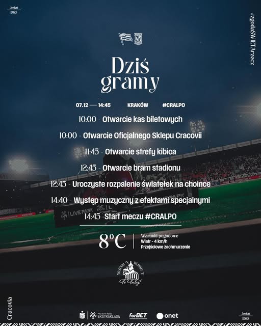 Siódme spotkanie w ramach 18 kolejki polskiej PKO BP Ekstraklasy sezonu 2025/2026. Na Stadionie KS Cracovii im. Józefa Piłsudskiego przy ulicy Kałuży 1 w Krakowie KS Cracovia podejmowała KKS Lech Poznań. Gospodarze bili się o pierwsze Mistrzostwo Polski od sezonu 1947/1948. Przed tą kolejką zajmowali czwarte miejsce w ligowej tabeli ze stratą czterech oczek do liderującego Górnika Zabrze. W pięciu ostatnich meczach ligowych Pasy ODNIOSŁY TYLKO JEDNO ZWYCIĘSTWO (na wyjeździe z Koroną Kielce 0:1), dwa razy zremisowały (u siebie z KGHM Zagłębiem Lubin 0:0 i na wyjeździe z Wisłą Płock 0:0) i poniosły dwie porażki (na wyjeździe z RKS Radomiakiem Radom 3:0 i u siebie z Motorem Lublin 1:2). W kadrze meczowej ekipy Luki Elsnera, na starcie z Niebiesko-Białymi, zabrakło Otara Kakabadze (kontuzja ścięgna Achillesa) i Gabriela André Josepha Charpentiera (Gabriela Charpentiera – uraz mięśniowy). Goście walczyli o obronę wywalczonego przed rokiem Mistrzostwa Polski. Przed tą serią gier byli na siódmej pozycji ze stratą pięciu oczek do liderującego Górnika Zabrze. W pięciu ostatnich pojedynkach ligowych Kolejorz ODNIÓSŁ TYLKO JEDNO ZWYCIĘSTWO (u siebie z RKS Radomiakiem Radom 4:1), trzy razy zremisował (u siebie z Motorem Lublin 2:2 oraz na wyjeździe z CWKS Legią Warszawa 0:0 i Wisłą Płock 0:0) i PONIÓSŁ TYLKO JEDNĄ PORAŻKĘ (na wyjeździe z MZKS Arką Gdynia 3:1). W kadrze meczowej zespołu Nielsa Frederiksena, na spotkanie z Krakowianami, zabrakło Alexa Raymonda Douglasa (Alexa Douglasa – kontuzja kostki), Daniela Håkansa (uraz kostki), Radosława Murawskiego (kontuzja mięśniowa), Jensa Patrika Wålemarka (Patrika Wålemarka – uraz mięśniowy), Antonio Milicia (kontuzja kostki), Gísliego Gottskálka Thórdarsona (Gísliego Thórdarsona – uraz kolana) i Filipa Jagiełło (kontuzja łydki). Która z drużyn zbliżyła się do swojego celu? Czy KS Cracovia pozostała w grze o Mistrzostwo Polski? Czy KKS Lech Poznań utrzymał swoją pozycję w walce o Mistrzostwo Polski? Przekonajmy się.