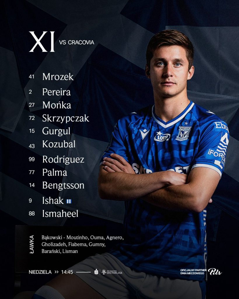 Porównując jedenastkę gości ze zremisowanego spotkania wyjazdowego z Wisłą Płock, z tą, która wybiegła na Stadionie KS Cracovii im. Józefa Piłsudskiego przy ulicy Kałuży 1 w Krakowie, Niels Frederiksen dokonał trzech roszad. Poza kadrą meczową, z powodu urazu kostki bądź kontuzji łydki, znaleźli się Antonio Milić i Filip Jagiełło, a na ławce rezerwowych zasiadł Mel Yannick Joel Agnero (Yannick Agnero). W ich miejsce, od pierwszej minuty, pojawili się Mateusz Skrzypczak, Taofeek Ajibade Ismaheel (Taofeek Ismaheel) oraz Mikael Ishak. Czy te zmiany spowodowały lepszą grę w obronie i ataku Kolejorza?