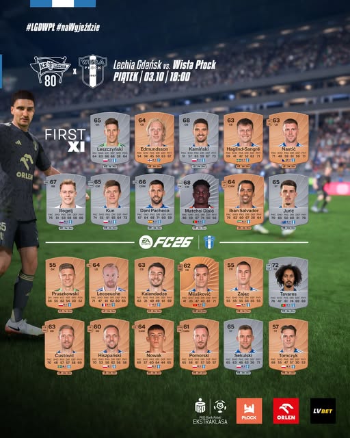 Pierwsze spotkanie w ramach 11 kolejki polskiej PKO BP Ekstraklasy sezonu 2025/2026. Na Polsat Plus Arenie w Gdańsku Lechia Gdańsk podejmowała Wisłę Płock. Gospodarze bili się o utrzymanie. Przed tą kolejką zajmowali ostatnie, osiemnaste miejsce w ligowej tabeli ze stratą TRZYNASTU PUNKTÓW do liderującego Górnika Zabrze. W pięciu ostatnich meczach ligowych Biało-Zieloni odnieśli trzy zwycięstwa (u siebie z MZKS Arką Gdynia 1:0 i GKS-em Katowice 2:0 oraz na wyjeździe z MKS Pogonią Szczecin 3:4) i ponieśli dwie porażki (na wyjeździe z BKS Jagiellonią Białystok 2:0 i Koroną Kielce 3:0). W kadrze meczowej ekipy Johna Williama Carvera (Johna Carvera), na starcie z Wiślakami, zabrakło Ivana Tarasovycha Zhelizko (Ivana Zhelizko – kontuzja kostki), Camilo Andrésa Meny Márqueza (Camilo Meny – nadmiar żółtych kartek), Miłosza Kałahura (bezpośrednia czerwona kartka z wyjazdu do Kielc), Antona Oleksandrovycha Tsarenko (Antona Tsarenko – uraz pachwiny) i Bogdana Igorovycha Sarnavskyi’ego (Bogdana Sarnavskyi’ego – kontuzja kolana). Goście nie chcieli powtórzyć swojego losu z sezonu 2022/2023. Przed tą serią gier byli na piątej pozycji ze stratą dwóch oczek do liderującego Górnika Zabrze. W pięciu ostatnich pojedynkach ligowych Nafciarze odnieśli dwa zwycięstwa (u siebie z CWKS Legią Warszawa 1:0 i KGHM Zagłębiem Lubin 2:1), raz zremisowali (u siebie z GKS-em Katowice 1:1) i ponieśli dwie porażki (na wyjeździe z MZKS Arką Gdynia 1:0 i u siebie z BKS Jagiellonią Białystok 0:1). W kadrze meczowej zespołu Mariusza Misiury, na spotkanie z Lechistami, zabrakło Macieja Gostomskiego (uraz kolana) i Jorge Jiméneza Rodrígueza (Jorge Jiméneza – złamanie piątej kości śródstopia). Która z drużyn zbliżyła się do swojego celu? Czy Lechia Gdańsk wydostała się ze strefy spadkowej? Czy Wisła Płock umocniła swoją pozycję w środku ligowej tabeli? Przekonajmy się.