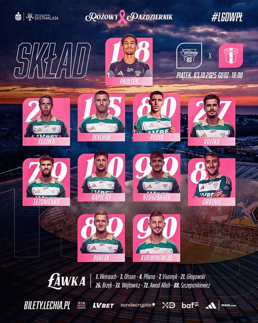Porównując skład gospodarzy z przegranego pojedynku wyjazdowego z Koroną Kielce, a ten, jaki wybiegł przeciwko Wiślakom, John Carver dokonał trzech zmian. Poza kadrą meczową, z powodu bezpośredniej czerwonej kartki bądź nadmiaru żółtych kartek, znaleźli się Miłosz Kałahur i Camilo Mena, a na ławce rezerwowych zasiadł Bogdan Sergiyovych Viunnyk (Bogdan Viunnyk). W ich miejsce, od pierwszej minuty, pojawili się Matúš Vojtko, Kacper Sezonienko oraz Aleksandar Ćirković. Czy te korekty wpłynęły pozytywnie na jakość gry defensywnej i ofensywnej Biało-Zielonych?