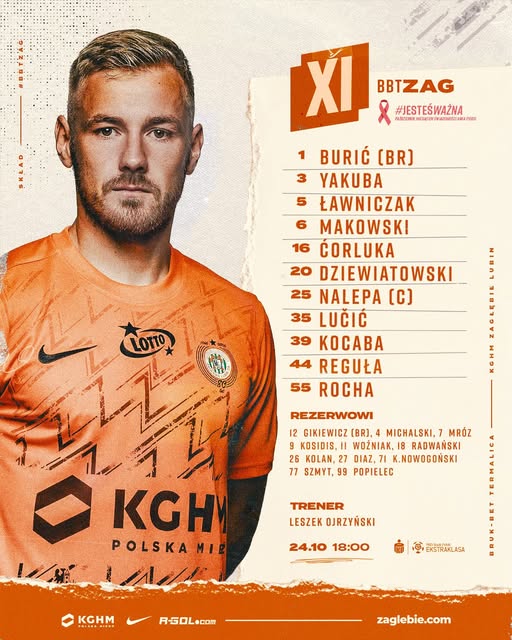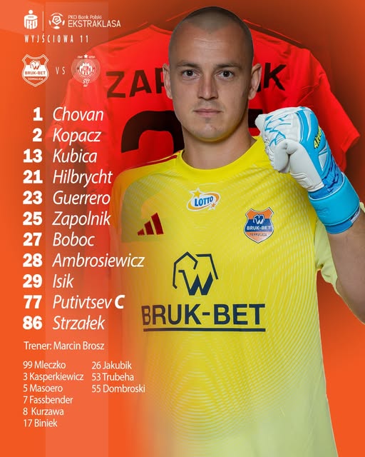 Pierwsze spotkanie w ramach 13 kolejki polskiej PKO BP Ekstraklasy sezonu 2025/2026. Na Stadionie Sportowym KS Bruk-Bet Termalici w Niecieczy KS Bruk-Bet Termalica Nieciecza podejmie KGHM Zagłębie Lubin. Gospodarze bili się o utrzymanie. Przed tą kolejką zajmowali przedostatnie, siedemnaste miejsce w ligowej tabeli ze stratą PIĘTNASTU PUNKTÓW do liderującej BKS Jagiellonii Białystok. W letnim okienku transferowym Niecieczanie pozyskali Bruno Wacławka (powrót ze Skry Częstochowa z wypożyczenia), Jakuba Braneckiego (powrót z MKS Chojniczanki 1910 Chojnice z wypożyczenia), Erwina Bahońko (powrót z GKS Pogoni Grodzisk Mazowiecki z wypożyczenia), Erica Topora (powrót z MKP Pogoni Siedlce z wypożyczenia), Tomasza Płanetę (powrót z KS Siarki Tarnobrzeg z wypożyczenia), Rafała Kurzawę (transfer definitywny z MKS Pogoni Szczecin), Lucasa Gabriela Masoero Masiego (Lucasa Masoero – transfer definitywny z FC Universitatea Cluj), Radu Ștefăniță Boboca (Radu Boboca – transfer definitywny z FC Universitatea Cluj), Jesúsa Jiméneza Núñeza (Jesúsa Jiméneza – transfer definitywny z Kerali Blasters FC), Miłosza Kozika (transfer definitywny ze 1KS Ślęzy Wrocław), Sergio Guerrero Romero (Sergio Guerrero – transfer definitywny z FC Cartagena) i Macieja Janickiego (przeniesienie z drużyny rezerw). Dodatkowo stracili Lukasa Spendlhofera (transfer definitywny do TSV Hartberg), Jakuba Nowakowskiego (transfer definitywny z MKS Znicza Pruszków), Jakuba Jańczego (przeniesienie do drużyny rezerw), Kacpra Karaska (transfer definitywny do Motoru Lublin), Wiktora Matyjewicza (powrót do GS Athens Kallithea z wypożyczenia), Tomasza Płanetę (transfer definitywny do KS Siarki Tarnobrzeg), Tarasa Mykhaylovycha Zaviyskyi’ego (Tarasa Zaviyskyi’ego – nieprzedłużenie wygasającego kontraktu), Andriya Anatoliyovycha Dombrovskyi’ego (Andriya Dombrovskyi’ego – nieprzedłużenie wygasającego kontraktu), Jakuba Różyckiego (wypożyczenie do KKS 1925 Kalisz), Mikołaja Mołgę (wypożyczenie do GKS 1972 Jastrzębie), Jakuba Braneckiego (wypożyczenie do ChKS Chełmianki Chełm), Bruno Wacławka (transfer definitywny do KS Siarki Tarnobrzeg), Jakuba Marcinkowskiego (przeniesienie do drużyny rezerw), Jakuba Wróbla (przeniesienie do drużyny rezerw) i Arkadiusza Morąga (transfer definitywny do AKS 1947 Busko-Zdrój). W pięciu ostatnich meczach ligowych Słonie NIE ODNIOSŁY ŻADNEGO ZWYCIĘSTWA, raz zremisowały (na wyjeździe z Motorem Lublin 1:1) i PONIOSŁY CZTERY PORAŻKI (u siebie z KKS Lechem Poznań 0:2 i RTS Widzewem Łódź 2:4 oraz na wyjeździe z GKS Piastem Gliwice 4:2 i Wisłą Płock 3:1). W kadrze meczowej ekipy Marcina Brosza, na starcie z Trójkolorowymi, zabrakło Macieja Wolskiego (kontuzja mięśniowa). Goście walczyli o zachowanie równowagi między zmaganiami domowymi a wyjazdowymi. Przed tą serią gier byli na siódmej pozycji ze stratą ośmiu oczek do liderującej BKS Jagiellonii Białystok. W pięciu ostatnich pojedynkach ligowych Miedziowi odnieśli trzy zwycięstwa (na wyjeździe z KKS Lechem Poznań 1:2 oraz u siebie z MZKS Arką Gdynia 4:0 i CWKS Legią Warszawa 3:1), raz zremisowali (u siebie z Motorem Lublin 2:2) i PONIEŚLI TYLKO JEDNĄ PORAŻKĘ (na wyjeździe z RKS Radomiakiem Radom 3:1). W kadrze meczowej zespołu Leszka Ojrzyńskiego, na spotkanie z Szalonymi Wieśniakami, zabrakło Mateusza Grzybka (złamanie kości piszczelowej), Adama Matyska (uraz mięśniowy), Jakuba Sypka (nadmiar żółtych kartek) i Dominika Hładuna (kontuzja barku). Która z drużyn zbliżyła się do swojego celu? Czy KS Bruk-Bet Termalica Nieciecza wydostała się ze strefy spadkowej? Czy KGHM Zagłębie Lubin zbliżyło się do strefy eliminacji do fazy ligowej Ligi Konferencji Europy w sezonie 2026/2027? Przekonajmy się.