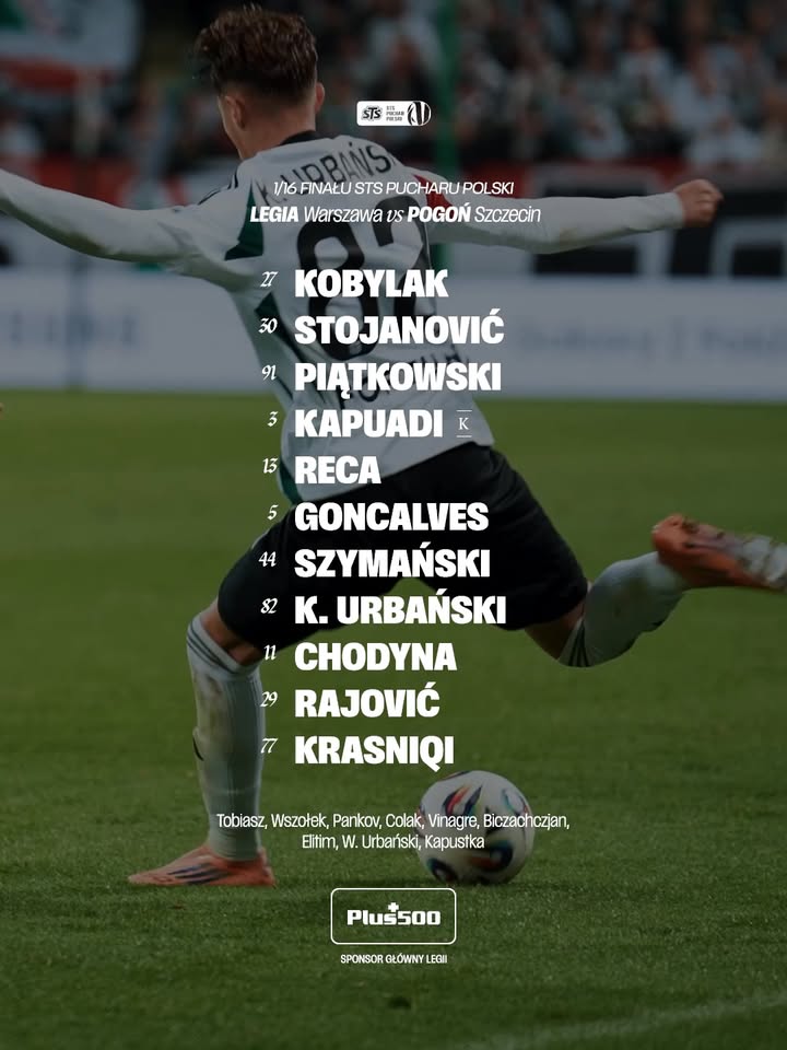 Ostatnie spotkanie w ramach 1/16 finału rozgrywek o piłkarski STS Puchar Polski w sezonie 2025/2026. Drugi z hitów tej rundy zmagań w krajowym pucharze. Na Stadionie Miejskim CWKS Legii im. Marszałka Józefa Piłsudskiego przy ulicy Łazienkowskiej 3 w Warszawie CWKS Legia Warszawa podejmowała MKS Pogoń Szczecin. Gospodarze bili się o pierwsze Mistrzostwo Polski od sezonu 2020/2021. Przed 14 kolejką PKO BP Ekstraklasy 2025/2026 zajmowali dziesiąte miejsce w ligowej tabeli ze stratą DZIESIĘCIU PUNKTÓW do liderującego Górnika Zabrze. W pięciu ostatnich meczach w Pucharze Polski Legioniści ODNIEŚLI PIĘĆ ZWYCIĘSTW (u siebie z BKS Jagiellonią Białystok 3:1, na wyjeździe z MKS Miedzią Legnica 1:2, ŁKS-em Łódź 0:3 i Ruchem Chorzów 0:5 oraz na PGE Narodowym w Warszawie z MKS Pogonią Szczecin 3:4) i NIE PONIEŚLI ŻADNEJ PORAŻKI. W kadrze meczowej ekipy Edwarda Mariusa Iordănescu (Edwarda Iordănescu), na starcie z Dumą Pomorza, zabrakło Jeana-Pierre’a Juniora Nsame (Jeana-Pierre’a Nsame – kontuzja ścięgna Achillesa) i Henrique Miguela Sousy Arreiola (Henrique Arreiola – uraz uda). Goście walczyli o strefę eliminacji do fazy ligowej Ligi Konferencji Europy na sezon 2026/2027. Przed 14 serią gier PKO BP Ekstraklasy 2025/2026 byli na dziewiątej pozycji ze stratą dziewięciu oczek do liderującego Górnika Zabrze. W pięciu ostatnich pojedynkach w Pucharze Polski Portowcy ODNIEŚLI CZTERY ZWYCIĘSTWA (u siebie z KGHM Zagłębiem Lubin 4:3 i GKS Piastem Gliwice 2:0 po dogrywce oraz na wyjeździe z MKS Puszczą Niepołomice 0:3 i MKP Kotwicą Kołobrzeg 0:3) i PONIEŚLI TYLKO JEDNĄ PORAŻKĘ (na PGE Narodowym w Warszawie z CWKS Legią Warszawa 3:4). W kadrze meczowej zespołu Thomasa Thomasberga, na spotkanie z Wojskowymi, zabrakło Renyera Luana de Oliveirę Damasceno (Renyera – kontuzja kolana). Która z drużyn awansowała do 1/8 finału STS Pucharu Polski w sezonie 2025/2026? Przekonajmy się.