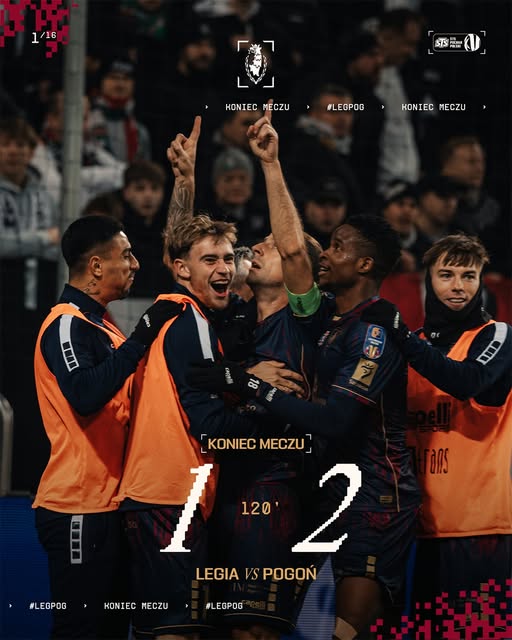 Sędzia Szymon Marciniak zakończył dogrywkę w ostatnim pojedynku w ramach 1/16 finału rozgrywek o piłkarski STS Puchar Polski sezonu 2025/2026 rozegraną na Stadionie Miejskim CWKS Legii im. Marszałka Józefa Piłsudskiego przy ulicy Łazienkowskiej 3 w Warszawie. Pierwsza połowa to optyczna przewaga miejscowych. Stworzyli kilka sytuacji podbramkowych, ale zabrakło im wykończenia. Przyjezdni szukali swoich szans po szybkich atakach, ale zabrakło im wykończenia. Druga połowa to duża dominacja gospodarzy. Wykreowali kilka okazji strzeleckich, ale zabrakło im wykończenia. Goście szukali swoich szans po kontratakach, z których wykorzystali jeden. Najlepszymi piłkarzami dogrywki byli Vahan Bichakhchyan i Linus Wahlqvist. Po tym spotkaniu Wojskowi mogli się skupić na walce o pierwsze Mistrzostwo Polski od sezonu 2020/2021, a Duma Pomorza awansowała do 1/8 finału STS Pucharu Polski 2025/2026. W następnej kolejce ligowej ekipa Edwarda Iordănescu zagra na Stadionie Miejskim RTS Widzewa Serce Łodzi przy Alei Piłsudskiego 138 w Łodzi z RTS Widzewem Łódź, natomiast zespół Thomasa Thomasberga zmierzy się na Orlen Stadionie im. Kazimierza Górskiego w Płocku z Wisłą Płock. Ostatecznie, na zakończenie 1/16 finału STS Pucharu Polski 2025/2026, CWKS Legia Warszawa przegrała na Stadionie Miejskim CWKS Legii im. Marszałka Józefa Piłsudskiego przy ulicy Łazienkowskiej 3 w Warszawie z MKS Pogonią Szczecin 1:2 po dogrywce. Gola dla Legionistów strzelił Kamil Piątkowski, a bramki dla Portowców zdobyli Kamil Grosicki i Adrian Przyborek.