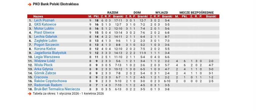 Podopieczni trenera Nielsa Frederiksena mozolnie weszli w 2026 roku. Wraz z biegiem czasu zaczęli meczami dochodzić do lepszej dyspozycji i pojawiła się przyjemna dla oka seria zwycięstw. Ta kolej rzeczy pozwoliła im powrócić na fotel lidera z przewagą trzech punktów nad Zagłębiem i Jagiellonią.