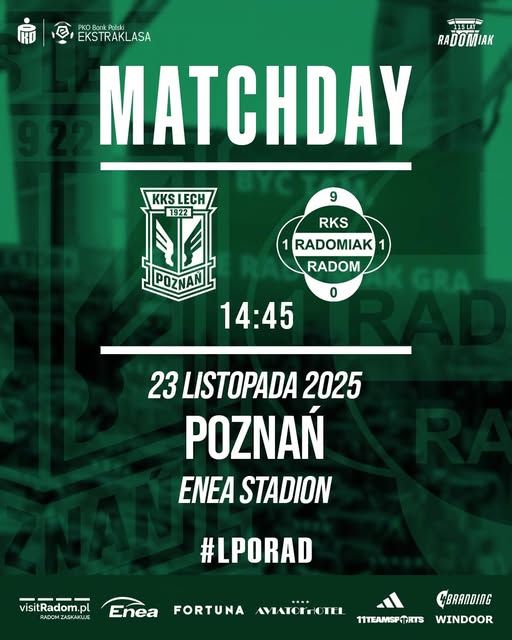Szóste spotkanie w ramach 16 kolejki polskiej PKO BP Ekstraklasy sezonu 2025/2026. Na Enea Stadionie przy ulicy Bułgarskiej 17 w Poznaniu KKS Lech Poznań podejmował RKS Radomiak Radom. Gospodarze bili się o obronę wywalczonego przed rokiem Mistrzostwa Polski. Przed tą kolejką zajmowali ósme miejsce w ligowej tabeli ze stratą ośmiu punktów do liderującego Górnika Zabrze. W pięciu ostatnich meczach ligowych Kolejorz ODNIÓSŁ TYLKO JEDNO ZWYCIĘSTWO (na wyjeździe z GKS-em Katowice 0:1), trzy razy zremisował (u siebie z MKS Pogonią Szczecin 2:2 i Motorem Lublin 2:2 oraz na wyjeździe z CWKS Legią Warszawa 0:0) i PONIÓSŁ TYLKO JEDNĄ PORAŻKĘ (na wyjeździe z MZKS Arką Gdynia 3:1). W kadrze meczowej ekipy Nielsa Frederiksena, na starcie z Warchołami, zabrakło Alexa Raymonda Douglasa (Alexa Douglasa – kontuzja kostki), Antonio Milicia (uraz mięśniowy), Jensa Patrika Wålemarka (Patrika Wålemarka – kontuzja mięśniowa), Radosława Murawskiego (uraz nogi), Daniela Håkansa (kontuzja kostki) i Timothy’ego Noora Babu Oumy (Timothy’ego Oumy – uraz mięśniowy). Pod znakiem zapytania stał występ Ali Gholizadeha (kontuzja mięśniowa). Goście walczyli o strefę eliminacji do fazy ligowej Ligi Konferencji Europy na sezon 2026/2027. Przed tą serią gier byli na piątej pozycji ze stratą siedmiu oczek do liderującego Górnika Zabrze. W pięciu ostatnich pojedynkach ligowych Zieloni odnieśli trzy zwycięstwa (u siebie z KGHM Zagłębiem Lubin 3:1 i KS Cracovią 3:0 oraz na wyjeździe z Lechią Gdańsk 1:2), raz zremisowali (u siebie z Wisłą Płock 1:1) i PONIEŚLI TYLKO JEDNĄ PORAŻKĘ (na wyjeździe z RTS Widzewem Łódź 3:2). W kadrze meczowej zespołu Gonçalo Feio, na spotkanie z Lechitami, zabrakło Abdoula Fassala Tapsoby (Abdoula Tapsoby – nadmiar żółtych kartek). Która z drużyn zbliżyła się do swojego celu? Czy KKS Lech Poznań pozostał w grze o Mistrzostwo Polski? Czy RKS Radomiak Radom wskoczył do strefy eliminacji do rundy ligowej UEFA Conference League na sezon 2026/2027? Przekonajmy się.